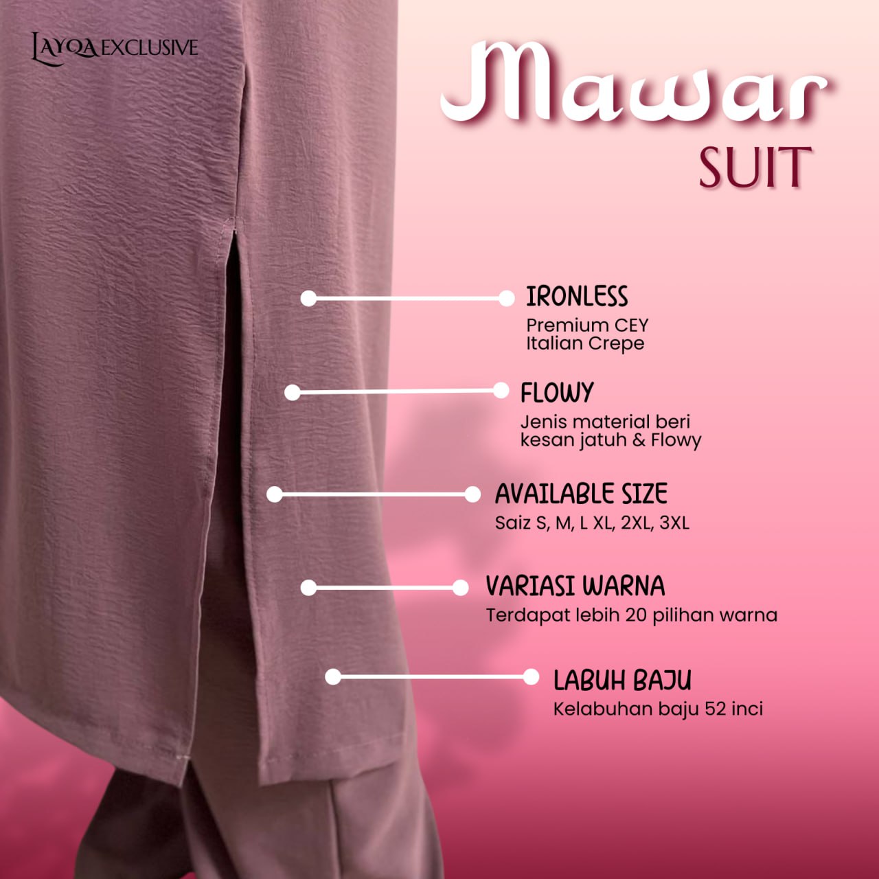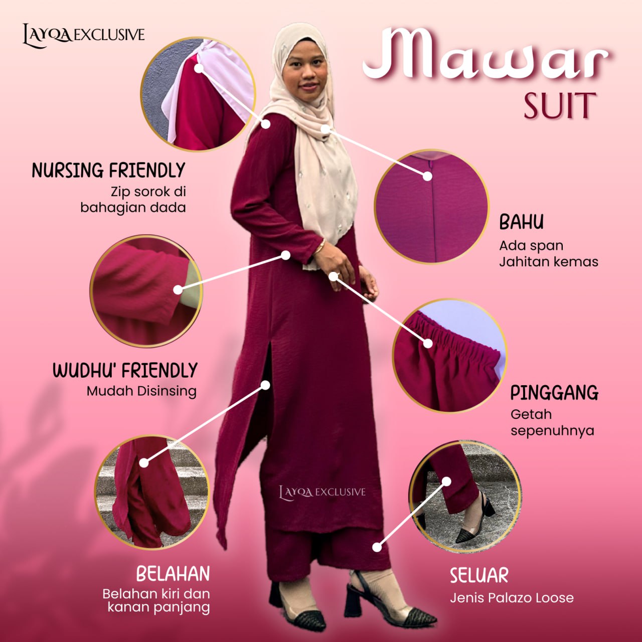 Set Muslimah Baju & Seluar sesuai ke Usrah & Umrah yang Selesa dan Patuh Syariah di Malaysia 🇲🇾. Sesuai digayakan ke tempat kerja mahupun untuk gaya kasual, Mawar Suit ini wajib dimiliki oleh setiap wanita muslimah moden.